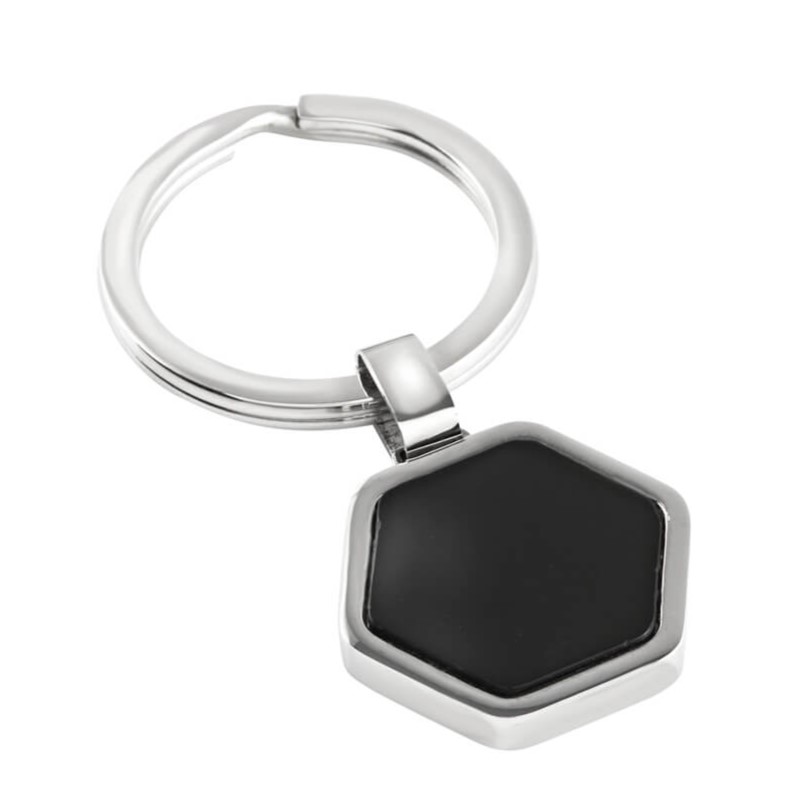 Il portachiavi Elementalist unisce eleganza e funzionalità con un pendente esagonale in acciaio lucido e agata nera. Il retro può essere inciso, permettendo di aggiungere un tocco personale all’accessorio