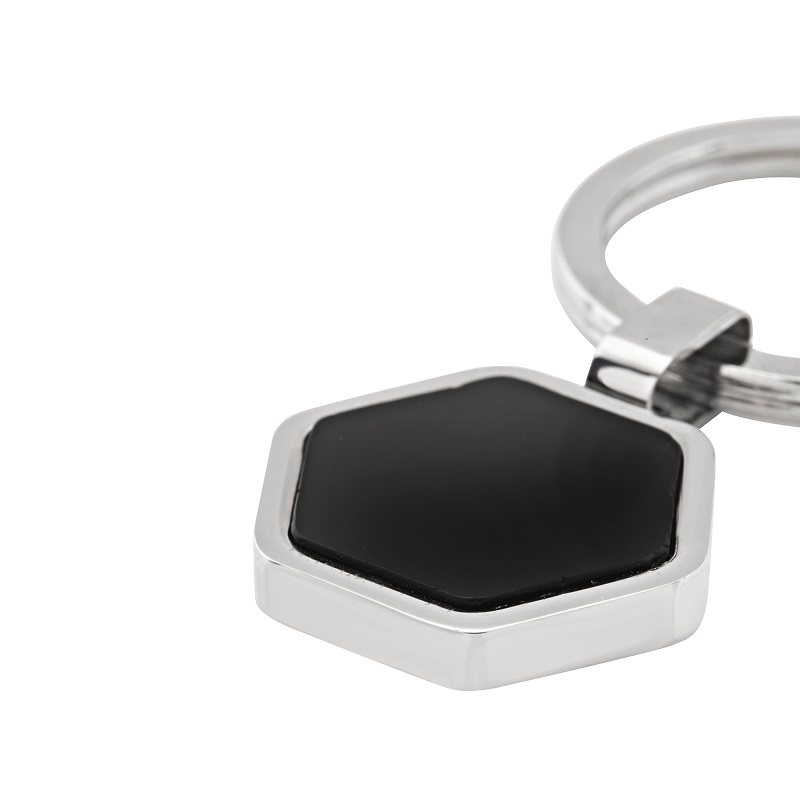 Il portachiavi Elementalist unisce eleganza e funzionalità con un pendente esagonale in acciaio lucido e agata nera. Il retro può essere inciso, permettendo di aggiungere un tocco personale all’accessorio