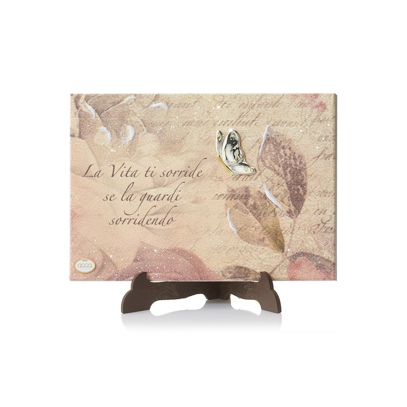 ACCA Argenti - Pannello Quadretto Linea "Auguri in battito d'Ali" - "La Vita ti sorride se la guardi sorridendo" - Dimensione 175 x 125 x 8 mm - Codice/Referenza: QD.846