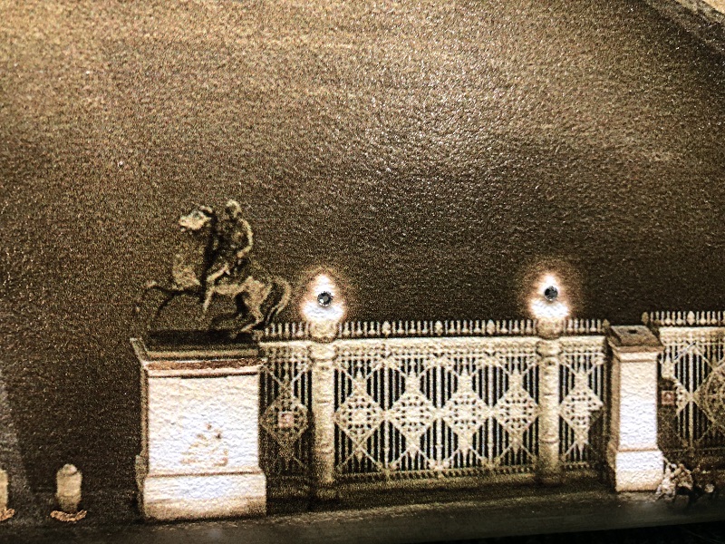 Pannello/Quadro in Legno, con dimensione 31 x 61 x 2 cm - Lavorazione fotografica su superficie pittorica (con pennellate "a rilievo", rifinito a mano dalle maestre della nostra Bottega d’Arte, con applicazione di dettagli in rilievo tridimensionale 3D in Argento lucido / dorato e inserimento di cristalli nei punti luce (vedi foto). Riproduzione artistica su superficie pittorica.