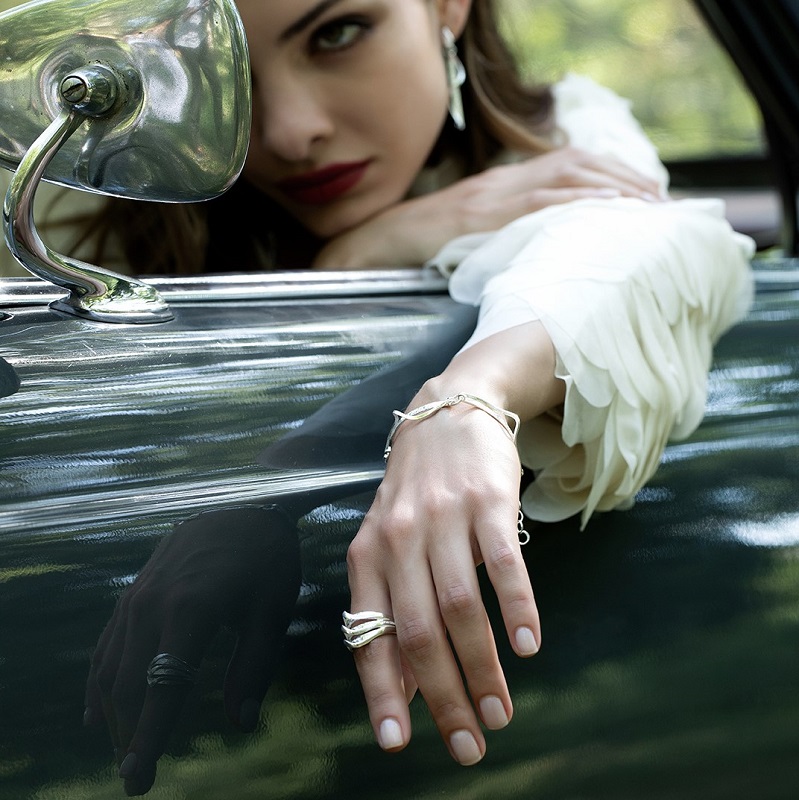 L’argento naturale è il protagonista assoluto di Athena, materia nobile e preziosa plasmata e lavorata con ispirazione e certosina pazienza. L’argento naturale e non stravolto da processi galvanici diventa forma immaginata e poi reale tra sfaccettature e luce, tra armonia ed estro, diventa un gioiello speciale e all’avanguardia, racconta di mondi passati o in divenire, si reinventa ad ogni collezione toccando stili diversi, anticipandoli o rivisitandoli.