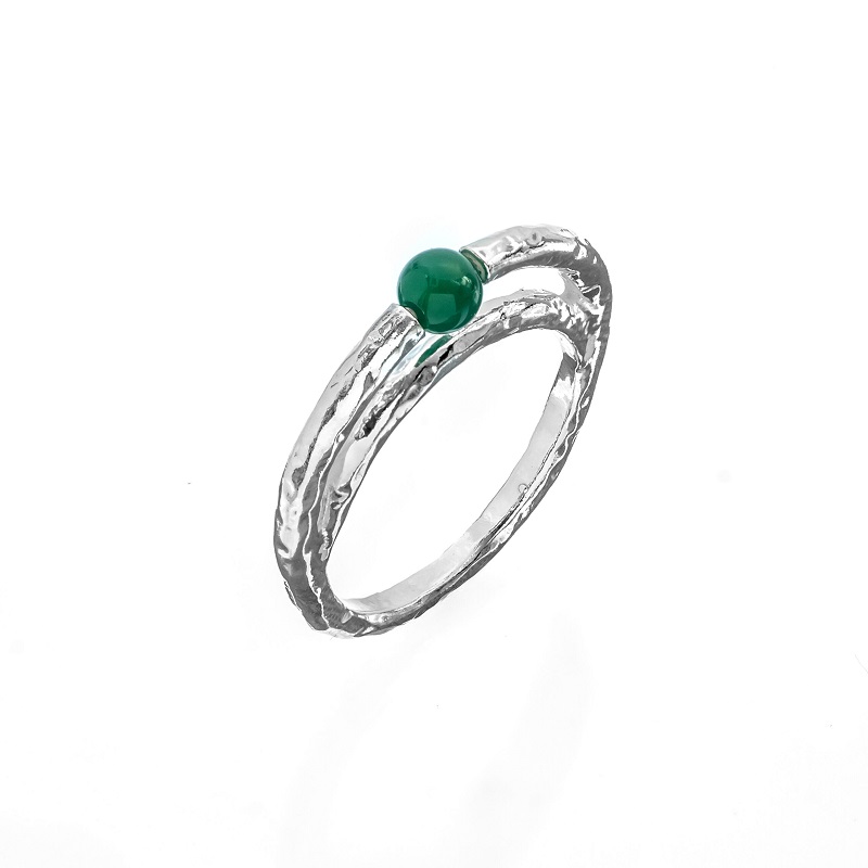 ANELLO ATHENA - Linea MIURA- Referenza: MPAT1322 - Argento Naturale 925 con Agata Verde