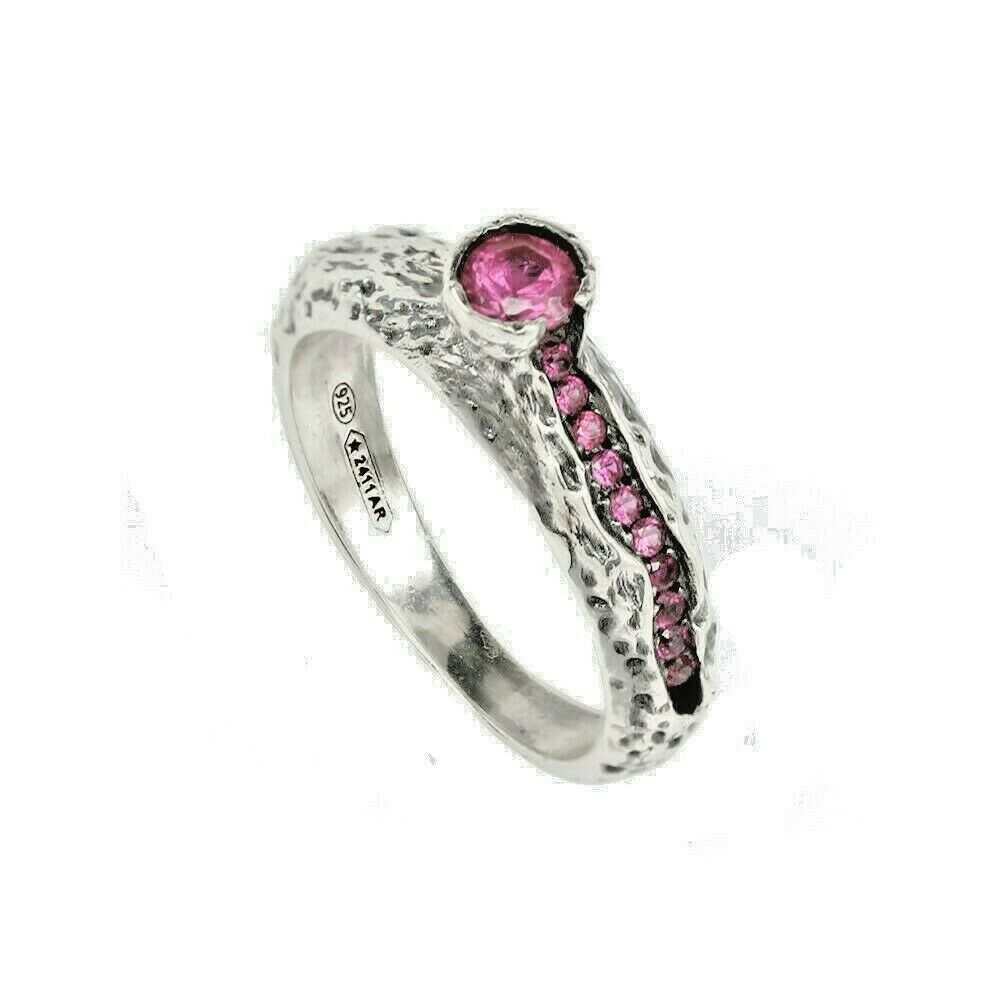 Realizzato a mano, in argento 925 anallergico è impreziosito da pietre fucsia