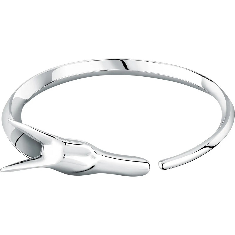 Genere: Donna - Misura/Diametro: 5,8 x 4,8 cm - Colore: Silver - Stile: Fashion - Modello: Rigido, con testa di levriero Trussardi, apribile - Materiale: Acciaio inox 316 L - Peso: 91 gr - Certificato di autenticità - Confezione: Originale Trussardi.