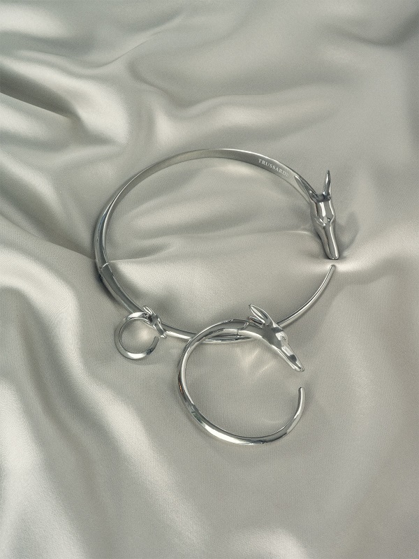 Genere: Donna - Misura/Diametro: 5,8 x 4,8 cm - Colore: Silver - Stile: Fashion - Modello: Rigido, con testa di levriero Trussardi, apribile - Materiale: Acciaio inox 316 L - Peso: 91 gr - Certificato di autenticità - Confezione: Originale Trussardi.