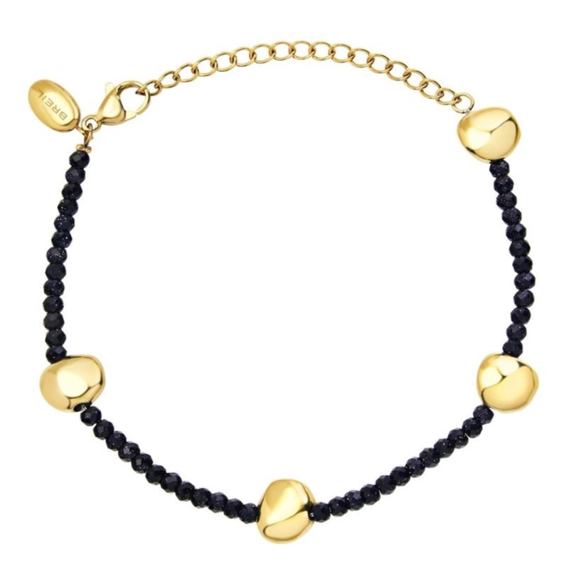 Materiale: Boule Acciaio Inox Ip Gold - Sandstone Blu - Chiusura: Moschettone - Lunghezza: minima 15 / massima 21 cm - Peso: 10 gr - Finitura: Specchiato
