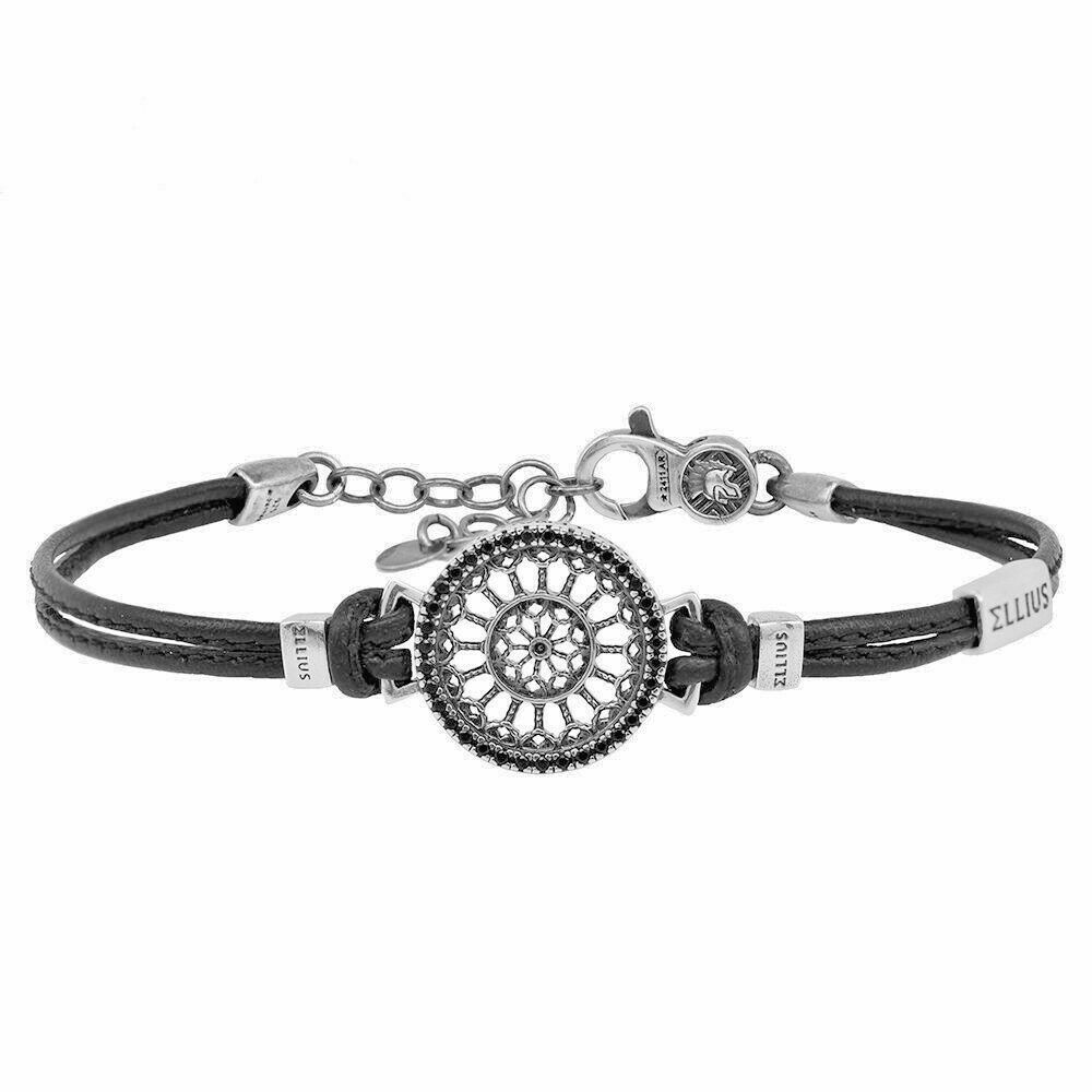Bracciale Pelle Argento Rosone "