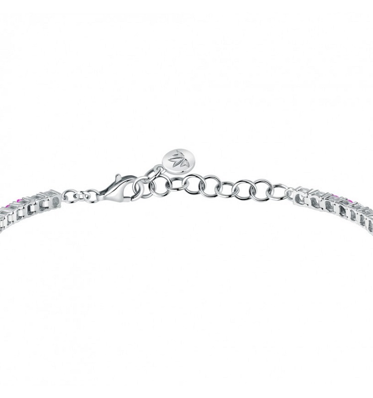 Bracciale da donna realizzato in argento 925% riciclato, con rifinitura rodiata, zirconi bianchi e rosa salmone.