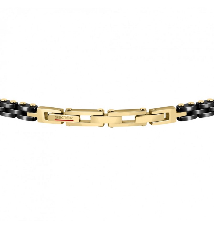 Genere: Uomo/Unisex - Misura: 22 cm - Colore: Silver, Nero - Materiale: Acciaio dorato IP Gold, Ceramica - Peso: 15,00 gr - Certificato di autenticità - Confezione: Originale Sector - Chiusura: Tipo "a gioielleria", in Acciaio Ip Gold - Garanzia di Autenticità Sector.