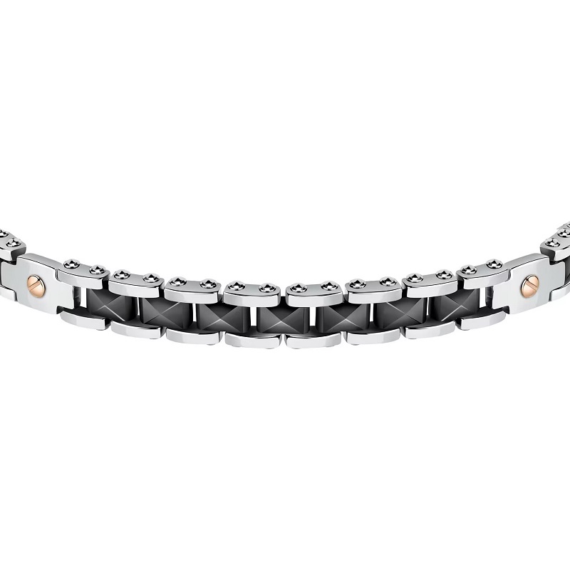 BRACCIALE SECTOR CERAMIC - SAFR30 - Genere: Uomo - Misura: 22 cm - Colore: Argento, Nero, Oro rosa - Materiale: Acciaio, Ceramica - Peso: 15 gr - Certificato di autenticità - Confezione: Originale Sector