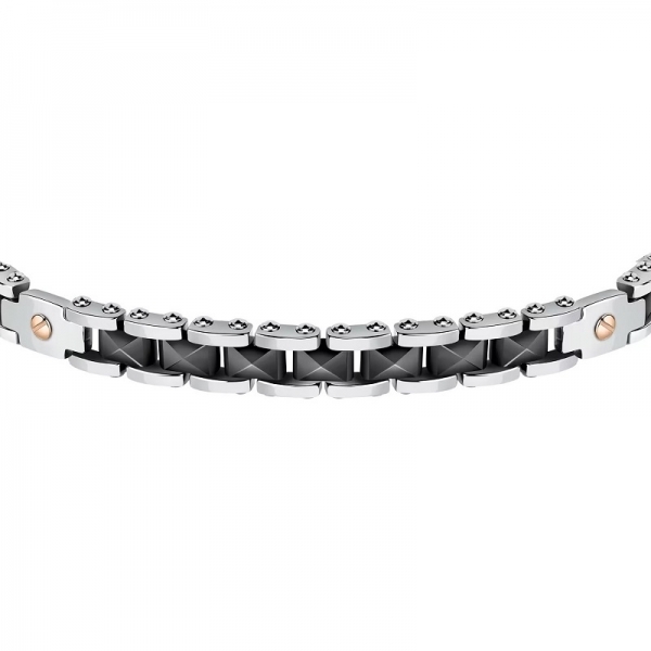 BRACCIALE SECTOR CERAMIC - SAFR30 - Genere: Uomo - Misura: 22 cm - Colore: Argento, Nero, Oro rosa - Materiale: Acciaio, Ceramica - Peso: 15 gr - Certificato di autenticità - Confezione: Originale Sector