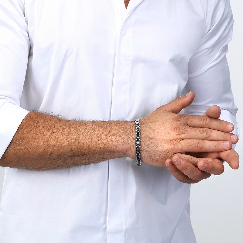 BRACCIALE SECTOR CERAMIC - SAFR30 - Genere: Uomo - Misura: 22 cm - Colore: Argento, Nero, Oro rosa - Materiale: Acciaio, Ceramica - Peso: 15 gr - Certificato di autenticità - Confezione: Originale Sector