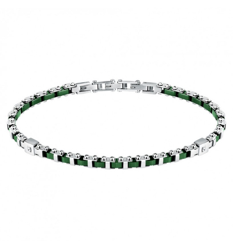 Genere: Uomo/Unisex - Misura: 19,5 + 2,5 cm - Colore: Silver, Verde - Materiale: Acciaio, Ceramica - Peso: 12,80 gr - Certificato di autenticità - Confezione: Originale Sector - Chiusura: Tipo "a gioielleria", in Acciaio - Garanzia di Autenticità Sector.