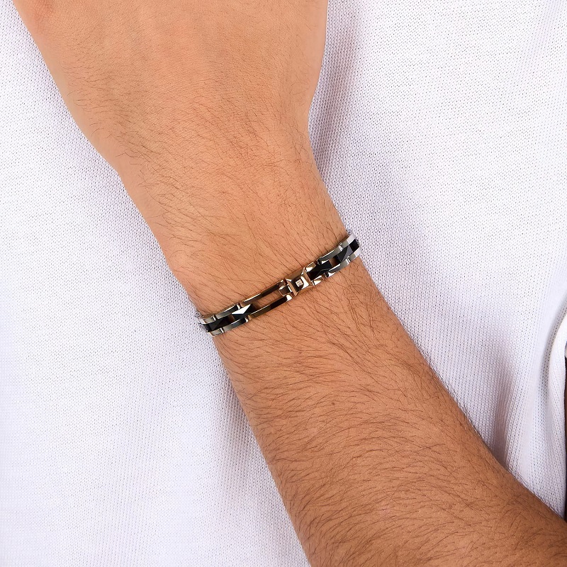 BRACCIALE SECTOR CERAMIC - SAFR47 - Genere: Uomo - Misura: 22 cm - Colore: Argento, Rosé, Nero - Materiale: Acciaio, Ceramica, Diamanti - Peso: 25,90 gr - Pietra: Diamante, Colore pietra: Gh, Carati pietra: 0,0045, Purezza Diamanti: SI3 - Certificato di autenticità - Confezione: Originale Sector