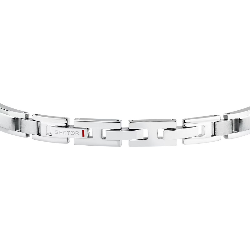 Genere: Uomo/Unisex - Misura: 22 cm - Colore: Argento - Materiale: Acciaio - Peso: 26,51 gr - Certificato di autenticità - Confezione: Originale Sector - Chiusura: Tipo "a gioielleria", in Acciaio, con elementi estraibili - Garanzia di Autenticità Sector.