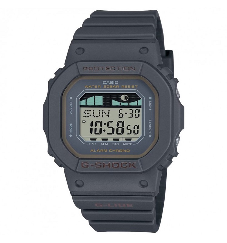 Ti presentiamo un orologio sportivo G-LIDE più compatto con display del grafico delle maree. Comodo e sottile, questo design si ispira alla natura. La lunetta e il cinturino sono realizzati con plastica a biomassa eco-sostenibile che utilizza fonti organiche rinnovabili per ridurre l'impatto ambientale. Eco-sostenibili e funzionali, questi orologi forniscono i grafici delle maree e i dati sulla luna necessari per cavalcare le onde di tutto il mondo, direttamente al polso del surfista.