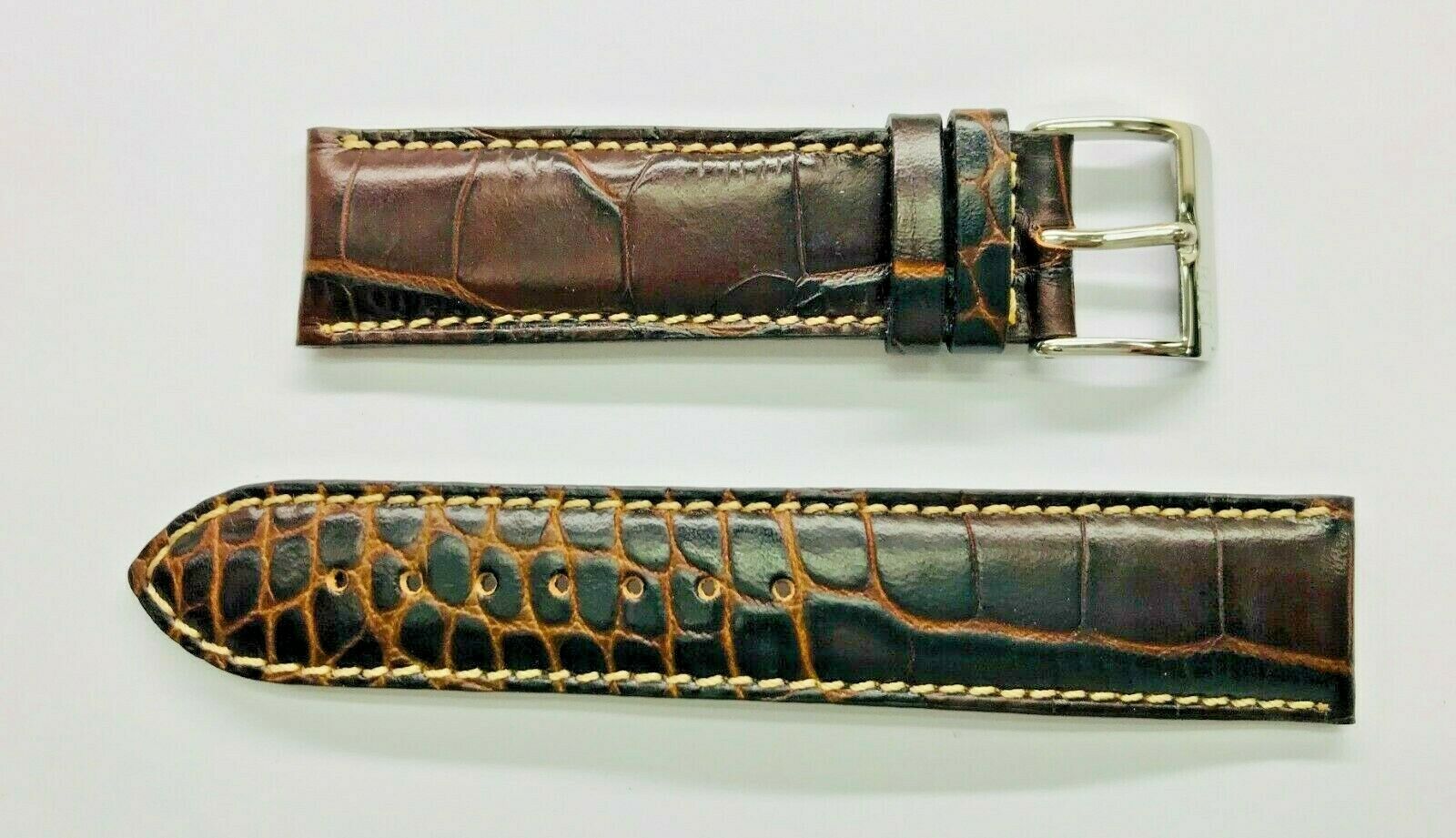Cinturino Originale RISI VENETHIA Pelle Stamp.Coccodrillo Marrone 22mm NoFibbia