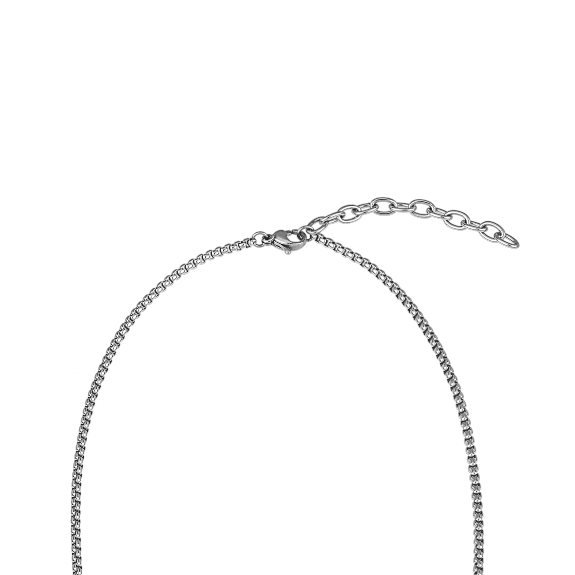 Materiale: Acciaio Inox, con Ciondolo esagonale in Ip black - Lunghezza catenina: Minima 47 cm / Massima 52 cm - Chiusura: A Moschettone - Finitura: specchiato/satinato - Peso: 14 gr