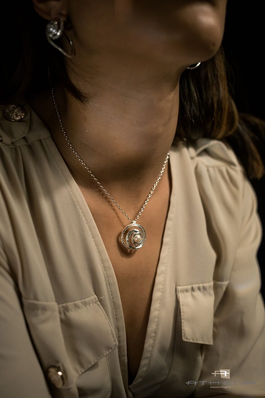 L’argento naturale è il protagonista assoluto di Athena, materia nobile e preziosa plasmata e lavorata con ispirazione e certosina pazienza. L’argento naturale e non stravolto da processi galvanici diventa forma immaginata e poi reale tra sfaccettature e luce, tra armonia ed estro, diventa un gioiello speciale e all’avanguardia, racconta di mondi passati o in divenire, si reinventa ad ogni collezione toccando stili diversi, anticipandoli o rivisitandoli.