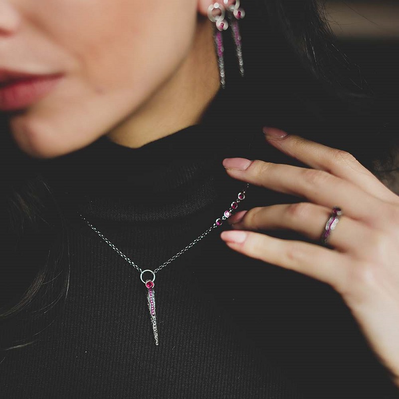 Collana Ciondolo in Argento 925 e Zirconia Fucsia "Vulcano"