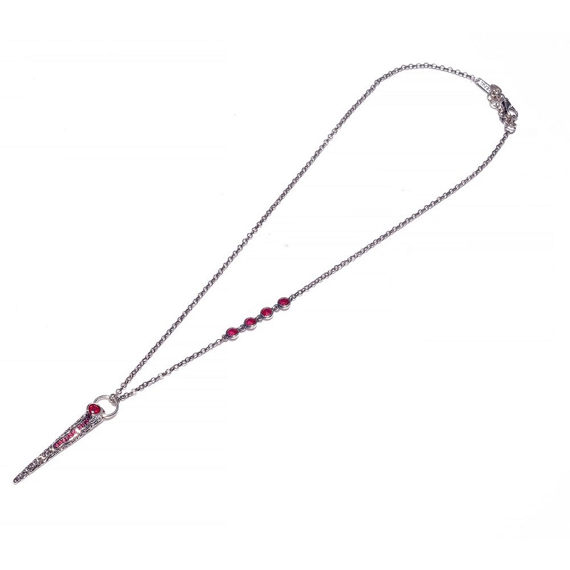 Composizione: Collana da Donna in Argento 925 Anallergico - Finitura: Catena ed elementi in argento invecchiato - Pietre: Zirconi Fucsia - Chiusura: Moschettone - Misura: 45 cm