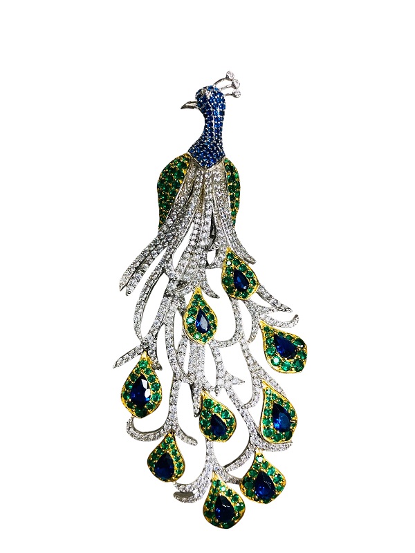 Magnifico Ciondolo-Spilla a forma di Pavone, realizzato da sapienti mani artigiane italiane
