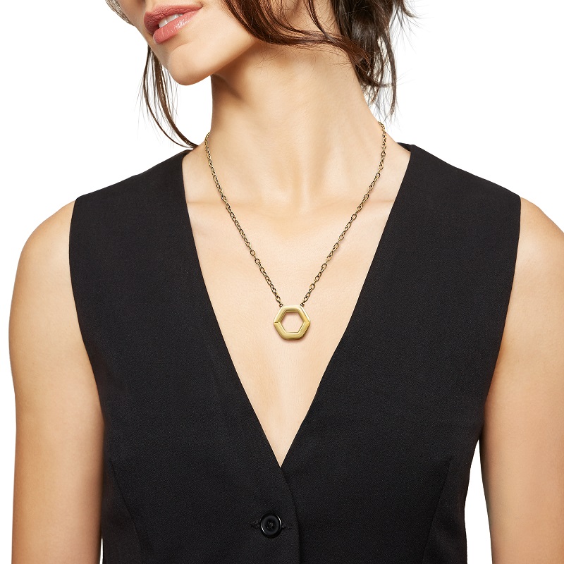 Collana Girocollo in Acciao Inox Ip Gold, con ciondolo ad Esagono - Referenza: TJ3507