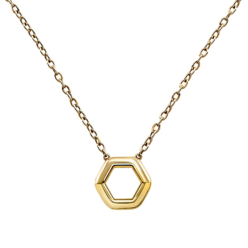 Collana Girocollo in Acciao Inox Ip Gold, con ciondolo ad Esagono - Referenza: TJ3507