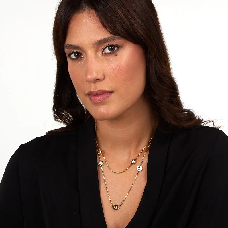 Genere: Donna - Lunghezza 90 cm - Colore: Oro Giallo - Stile: Fashion - Modello: Catenina con Ciondolo ∅ 5 mm tondo liscio - Materiale: Acciaio inox dorato, Cristalli - Certificato di autenticità - Confezione: Originale Trussardi.