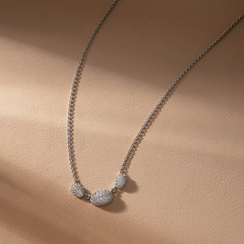 Collana da donna realizzata in argento 925% con finitura rodiata, con Zirconi bianchi a Pavè - Lunghezza: Minima 40 cm, Massima 45 cm - Peso: 3,850 gr - Chiusura a moschettone.
