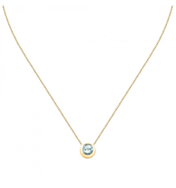 Collana da donna realizzata in argento 925% con finitura dorata. Pendente con Topazio Azzurro - Lunghezza: Minima 40cm, Massima: 45 - Peso: 6.720g - Chiusura: Moschettone