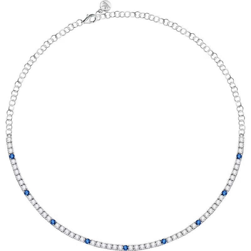 Collana a girocollo, da donna, realizzata in argento 925%, con zirconi bianchi e blu - Lunghezza: Minima 38 cm, Massima 42 cm - Peso: 10 gr - Chiusura: moschettone.