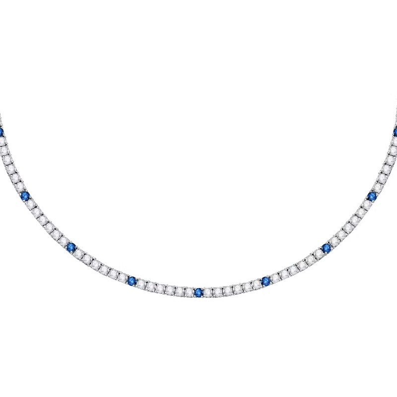 Collana a girocollo, da donna, realizzata in argento 925%, con zirconi bianchi e blu - Lunghezza: Minima 38 cm, Massima 42 cm - Peso: 10 gr - Chiusura: moschettone.