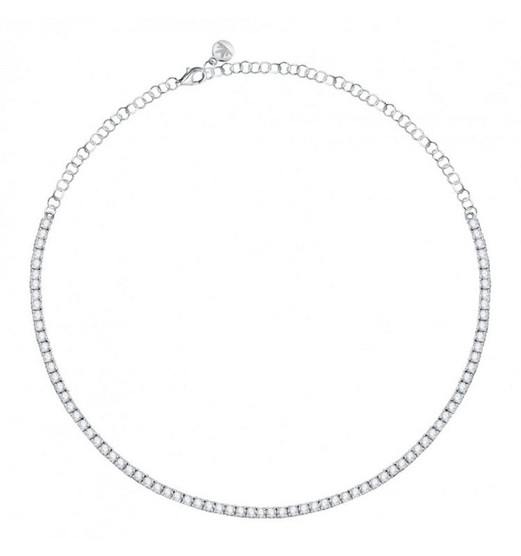Collana da donna realizzata in argento 925% riciclato con rifinitura rodiata, con zirconi bianchi. Lunghezza minima: 38 cm, massima: 42 cm, peso 13 gr, chiusura a moschettone. Perfetto per ogni donna che vuole aggiungere un tocco di classe al proprio look.