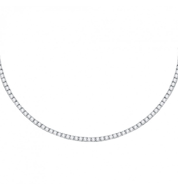 Collana da donna realizzata in argento 925% riciclato con rifinitura rodiata, con zirconi bianchi. Lunghezza minima: 38 cm, massima: 42 cm, peso 13 gr, chiusura a moschettone. Perfetto per ogni donna che vuole aggiungere un tocco di classe al proprio look.