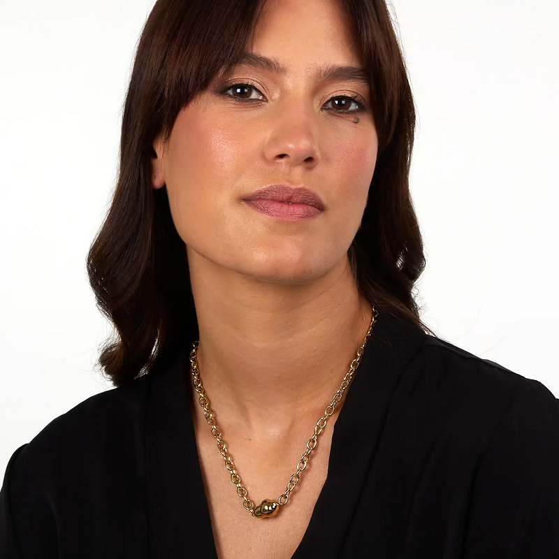 Genere: Donna - Lunghezza 45 cm - Colore: Oro Giallo - Stile: Fashion - Modello: Catenina con Ciondolo A Boulle liscio - Materiale: Acciaio inox dorato - Peso: 30 gr - Certificato di autenticità - Confezione: Originale Trussardi.