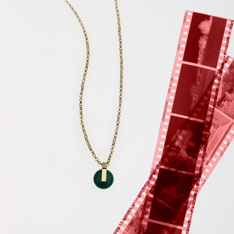 Genere: Donna - Lunghezza totale 40 cm - Colore: Oro Giallo - Stile: Fashion - Modello: Catenina con Ciondolo tondo a bottone - Materiale: Acciaio inox dorato, Agata Naturale Verde - Certificato di autenticità - Confezione: Originale Trussardi.