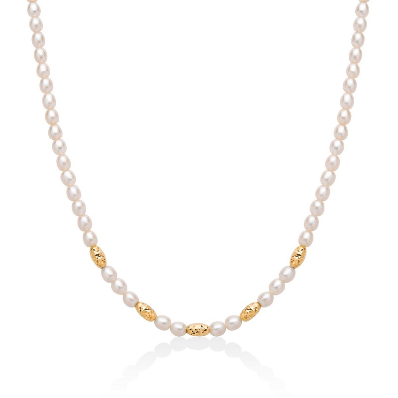 Collana YUKIKO - Linea PEPITE DI PERLE - Referenza: PCL6648GY - Perle Coltivate a chicco di Riso - Argento Dorato 925