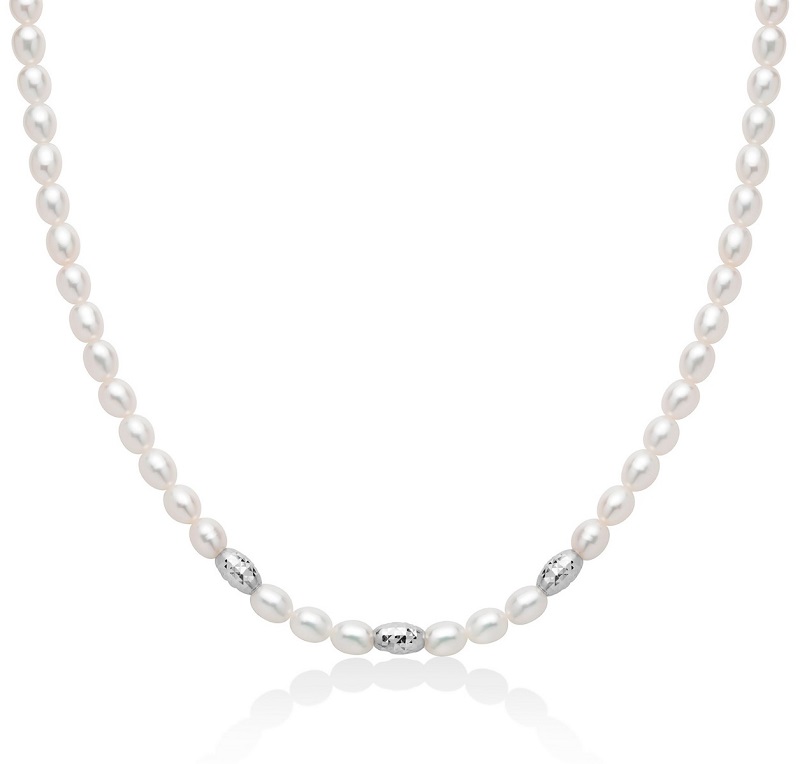 Collana in argento 925 con Perle naturali - Argento 925/1000 - Fl 1 Perle vere riso - Colore: Bianco - Diametro: 4 - 4,5 mm - Lunghezza collana 40 cm + Chiusura a Moschettone in Argento 925