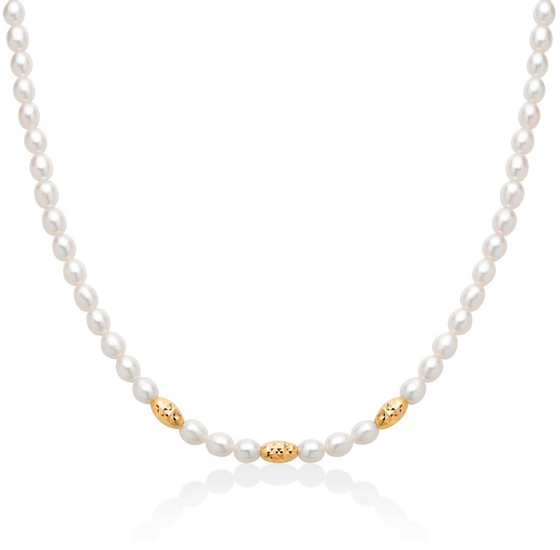 Collana YUKIKO - Linea PEPITE DI PERLE - Referenza: PCL6653GY - Perle Coltivate Riso - Argento Dorato 925