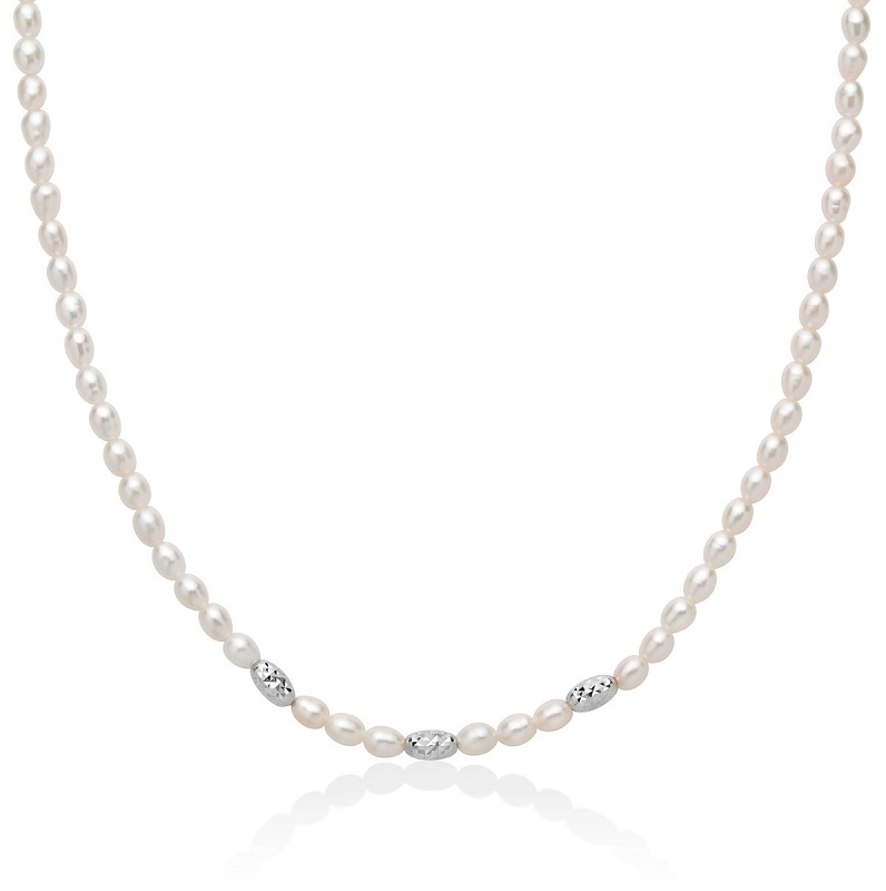 Collana in argento 925 con Perle naturali - Argento 925/1000 - Fl 1 Perle vere riso - Colore: Bianco - Diametro: 4 - 4,5 mm - Lunghezza collana 40 cm + Chiusura a Moschettone in Argento 925