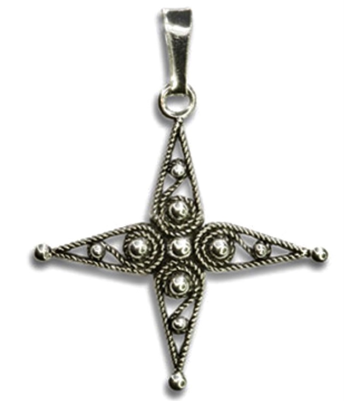 Questa Croce interpreta nella tecnica della filigrana il simbolo sacro più diffuso tra le devote genti di Sardegna.