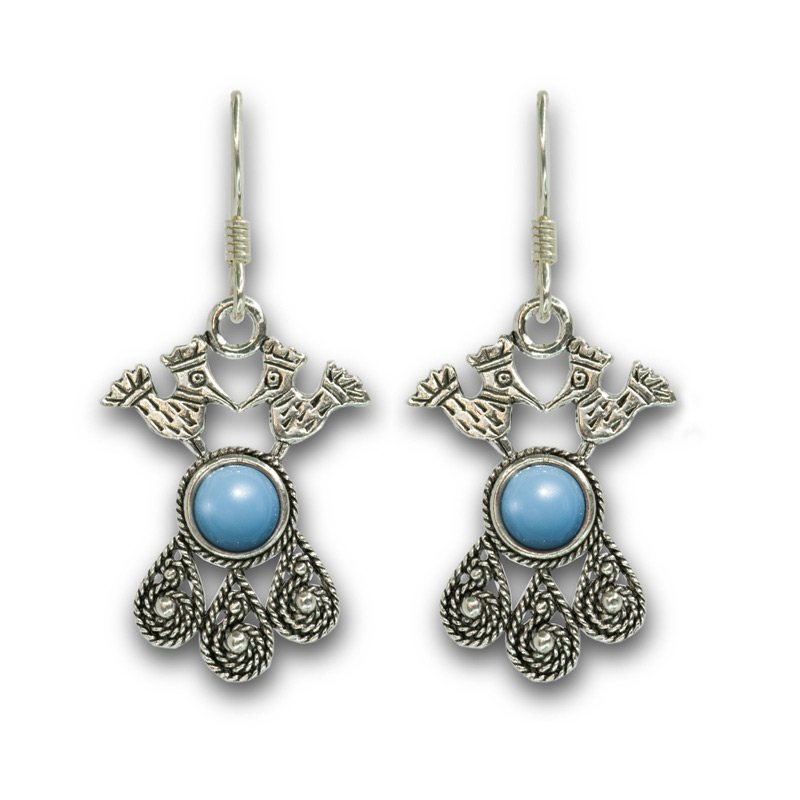Materiale Orecchini: Argento anticato anallergico (con lavorazione a filigrana) e Cabochon in Turchese - Lunghezza Orecchino al lobo: 3,3 cm - Dettaglio dimensione decorazione orecchini: 2 x 1,5 cm - Chiusura: Monachella