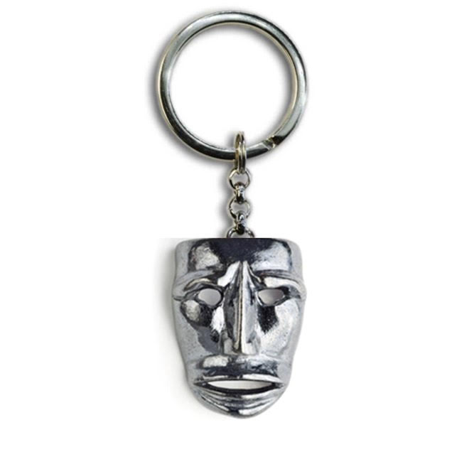 Portachiavi in acciaio con maschera in argento 800, riproduzione della famosa maschera del carnevale di Mamoiada.