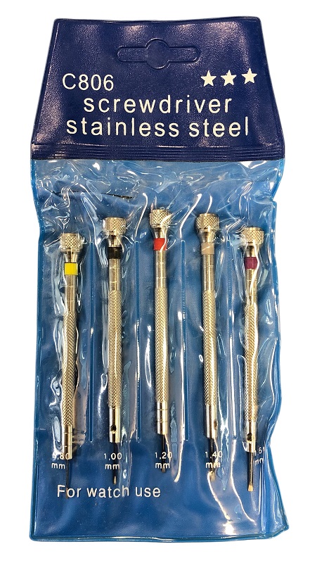 Kit / Set Completo 5 Cacciaviti Professionali, di precisione, a taglio - Orologiaio Orologi Acciaio - C806 - Code: 35472 - GJ004