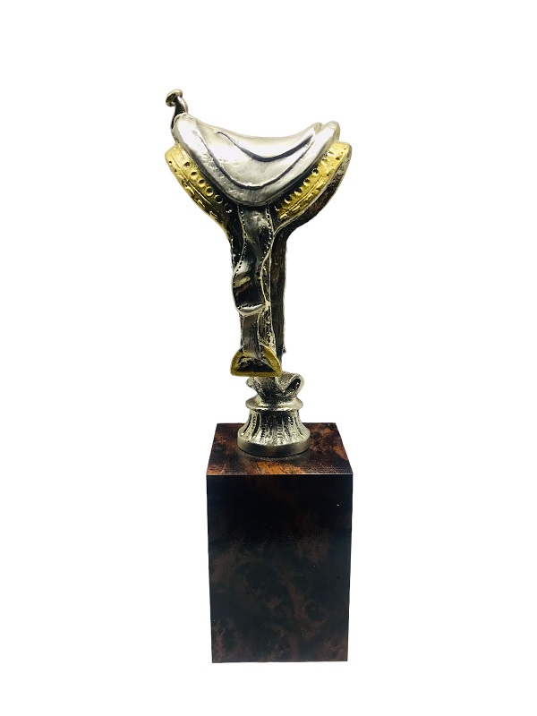 Mini Trofeo - Premiazione Sportiva - Soprammobile - Sella - Equitazione - Cavallo - Resina dipinta a mano - Base in legno