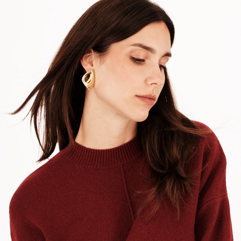 Gli iconici orecchini Retwist vengono impreziositi da un pavè di cristalli bianchi per illuminare il viso e rendere unico ogni look. Questi orecchini sono dei veri e propri oggetti di design, caratterizzati dalle forme fluide e sinuose lungo cui si modella l'acciaio color gold, sottile e leggero.