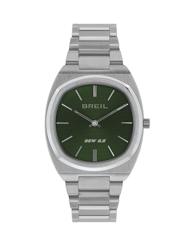 L'orologio solo tempo da uomo BSW 6.5 riduce all'essenza ogni dettaglio per mostrarsi in tutto il suo fascino discreto e minimal. BSW è l'acronimo di Breil Slim Watch e spiega in una sigla la caratteristica principale di questo orologio: il suo spessore super slim, di soli 6,5 mm. Il bracciale è in acciaio così come la cassa di forma leggermente squadrata che alterna superfici lucide e satinate. Al suo interno, un insolito quadrante verde con texture rigata, per un effetto super glam e contemporaneo.