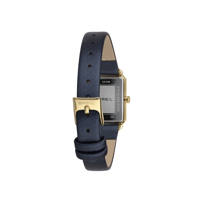 Movimento: Giapponese, Solo Tempo - Cassa: in acciaio inox dorato IP gold, di forma rettangolare, con misure 20x24 mm - Quadrante: Bianco, con lancette e indici dorati - Peso: 21 gr - Cinturino: in ecopelle blu effetto satin, con misura minima 13,5 cm e massima 19 cm - Chiusura: Fibbia dorata - Fondo: in acciaio inox, a pressione - Water Resist 5 atm