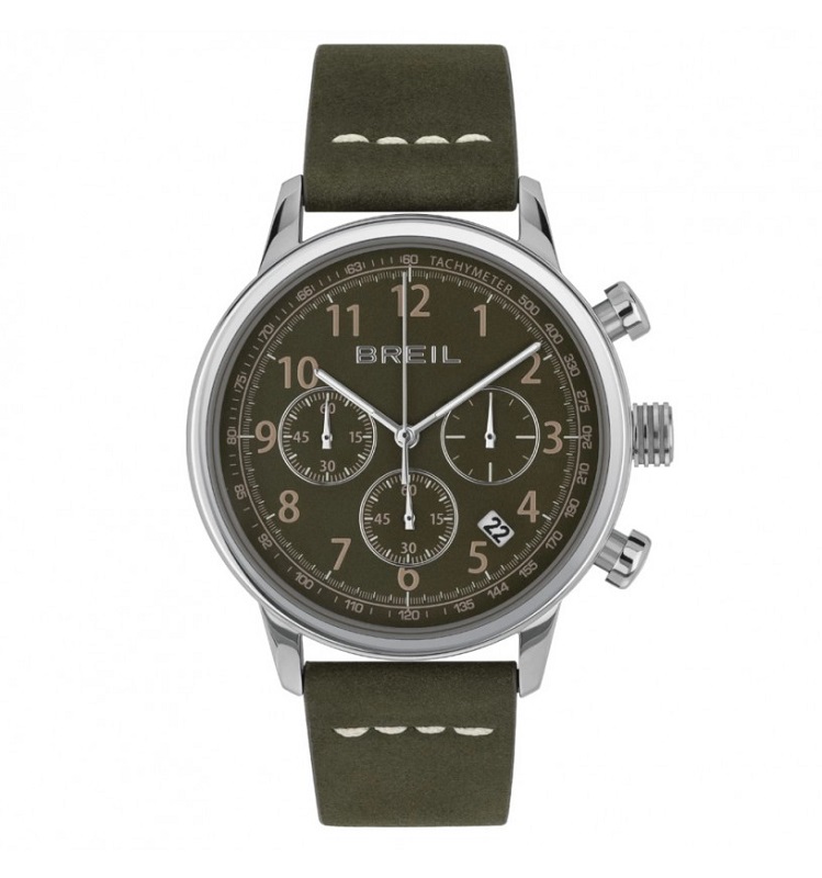 Orologio BREIL OUTRIDER TW2059 Acciaio Chrono Data Numeri Ecopelle Verde 41 mm